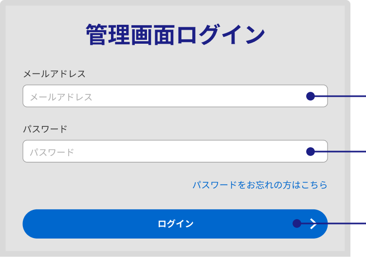 アカウント登録時に登録したメールアドレスとパスワードを入力し、ログインボタンをクリックするとログイン完了です。管理画面TOPページが表示されます。