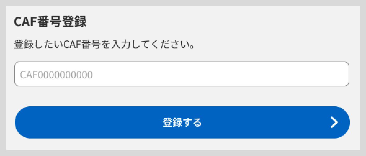 CAF番号登録フォームにCAF番号を入力してください。