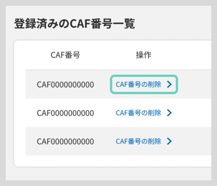 3. 登録済みCAF番号の削除方法