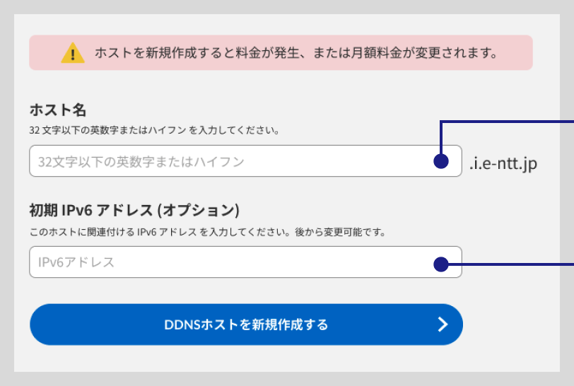 DDNSホストを新規作成すると料金が発生します。詳しくは利用料金のページをご確認ください。