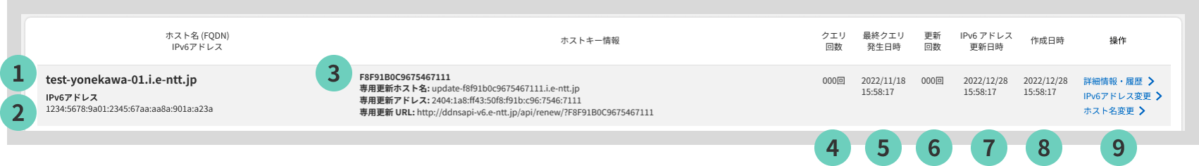 登録済みDDNSホストの一覧が表示され、DDNSホストについての各種情報が確認できます。