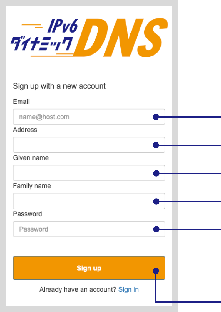 アカウント登録は無料です。ログイン後、IPv6ダイナミックDNSホスト名を登録すると料金が発生します。